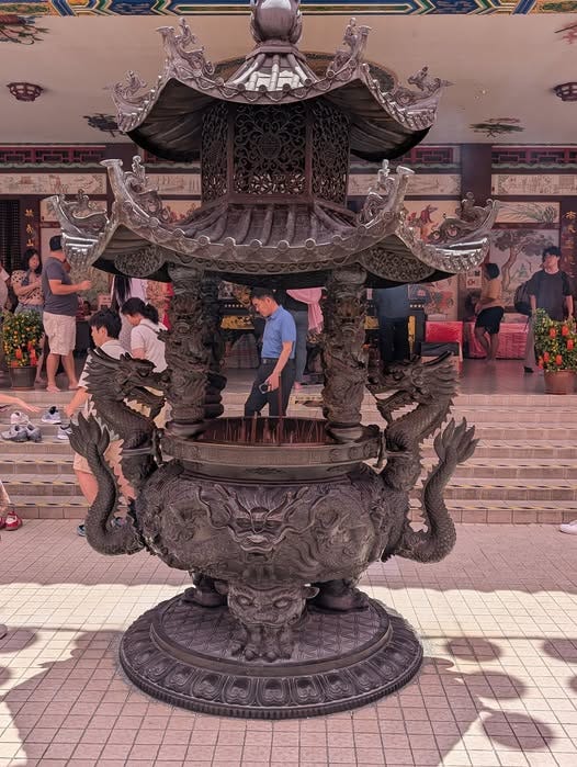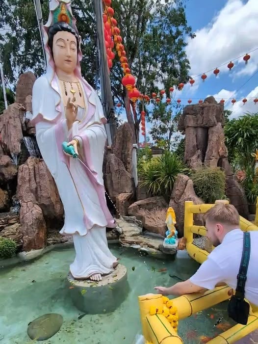 We then arrive in Malaysia to spend time with our middle son and his partner, but I still keep one eye on this project and what comes to attention. On our last day in Kuala Lumpur my son organized a visit to the Thean Hou Temple, dedicated to the Chinese sea goddess Mazu (I suspect that he did this to please me! The picture of Mazu and my son appears at the top of this blog). We are told that she was a female shaman from Fujian, who is said to have lived in the late 10th century. After her death, she became revered as a tutelary deity of Chinese seafarers, including fishermen and sailors. Her worship spread throughout China’s coastal regions and overseas Chinese communities throughout Southeast Asia, where some Mazu temples are affiliated with famous Taiwanese temples. Traditionally, Mazu was believed to roam the seas, safeguarding her devotees through miraculous interventions. SOURCE